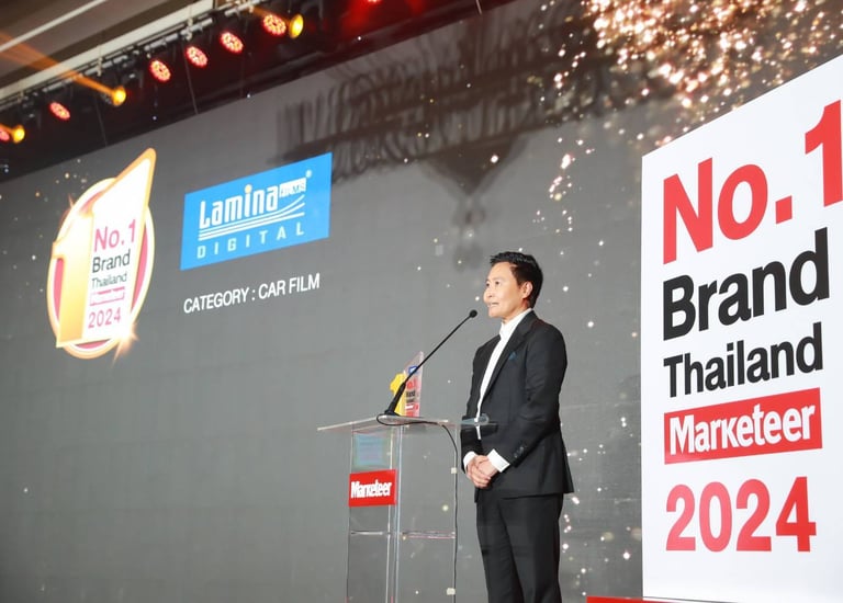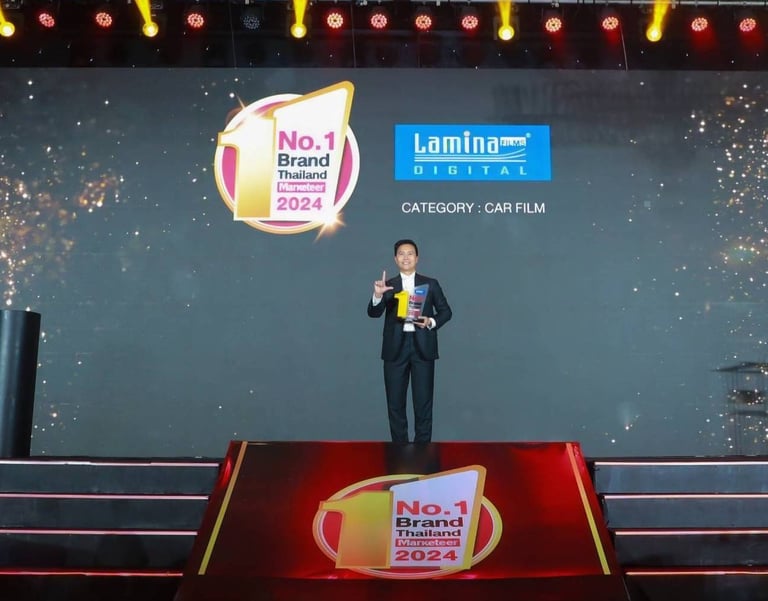 “ลามิน่าฟิล์ม” ตอกย้ำความเป็นผู้นำฟิล์มกรองแสงรถยนต์และอาคาร คว้ารางวัลแบรนด์ยอดนิยมอันดับ 1 ของประเทศไทย ประจำปี 2567 หรือ Marketeer No.1 Brand Thailand 2024 ต่อเนื่องปีที่ 9 ตอกย้ำความแข็งแกร่งของลามิน่าที่หนึ่งในใจผู้บริโภค จัดโดยมาร์เก็ตเธียร์ กรุ๊ป ร่วมกับ บริษัท มาร์เก็ตติ้ง มูฟ จำกัด