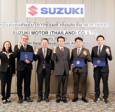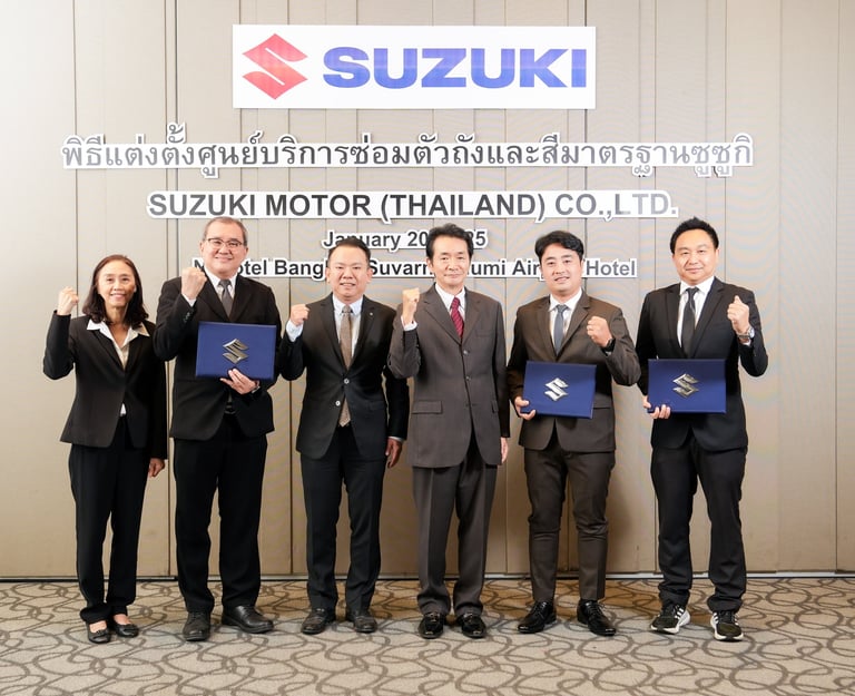 นายวัลลภ ตรีฤกษ์งาม รองประธานกรรมการบริหาร บริษัท ซูซูกิ มอเตอร์ (ประเทศไทย) จำกัด กล่าวว่า สิ่งหนึ่งที่ซูซูกิแสดงให้ผู้บริโภคได้รับทราบเสมอมา คือ ความใส่ใจในงานบริการและการดูแลลูกค้าอย่างจริงใจ ผ่านการร่วมมือร่วมใจกับผู้จำหน่ายในการพัฒนาและเดินหน้าการยกระดับงานบริการให้เป็นไปตามแผนงานที่วางไว้ โดยเมื่อวันที่ 20 มกราคม 2568 ที่ผ่านมา ซูซูกิได้ร่วมกับผู้จำหน่ายในพิธีแต่งตั้งศูนย์บริการซ่อมตัวถังและสีมาตรฐานซูซูกิอย่างเป็นทางการ ณ โรงแรมโนโวเทล สุวรรณภูมิ แอร์พอร์ต จำนวน 3 ราย (4 สาขา) ครอบคลุมพื้นที่บริการในหลายจังหวัดมากยิ่งขึ้น ประกอบด้วยลำดับ