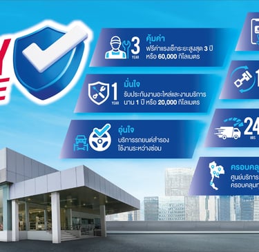 อุ่นใจไร้กังวล กับการขยายการรับประกันงานซ่อมและอะไหล่แท้ทุกชิ้น นานถึง 1 ปี หรือ 20,000 กิโลเมตร (โดยอย่างใดอย่างหนึ่งถึงก่อน) จากเดิมที่รับประกันเพียง 3 เดือน หรือ 5,000 กิโลเมตร