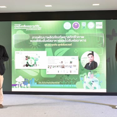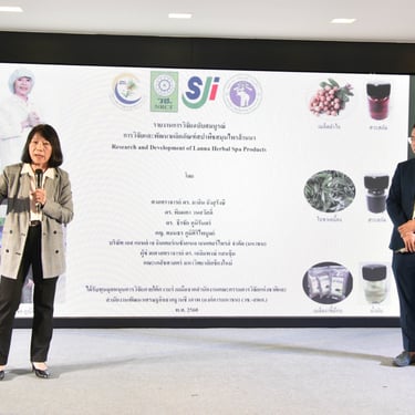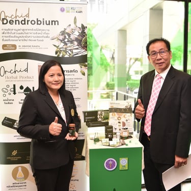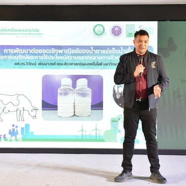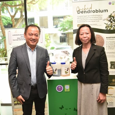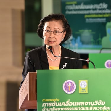 รศ.ดร.นภาวรรณ นพรัตนราภรณ์ ผู้อำนวยการแผนงานศูนย์ขับเคลื่อนผลงานวิจัยด้านทรัพยากรธรรมชาติและสิ่งแวดล้อมสู่การนำไปใช้ประโยชน์ กล่าวถึง แผนงานวิจัยศูนย์ขับเคลื่อนผลงานวิจัยด้านทรัพยากรธรรมชาติและสิ่งแวดล้อมสู่การนำไปใช้ประโยชน์ ที่ได้รับการสนับสนุนทุนจาก วช. เพื่อประเมินผลผลิต ผลลัพธ์ ผลกระทบของโครงการวิจัย และขับเคลื่อนขยายผลสู่การใช้ประโยชน์ในกลุ่มเป้าหมายภาคส่วนต่าง ๆ นั้น โดยระยะแรกได้ดำเนินการประเมินโครงการวิจัยที่ได้รับทุนด้านทรัพยากรธรรมชาติและสิ่งแวดล้อม ตั้งแต่ปี 2557 - 2563 จำนวนรวมทั้งสิ้น 468 โครงการ ในเบื้องต้นพบว่ามีโครงการวิจัยที่สามารถขับเคลื่อนขยายผลสู่การนำไปใช้ประโยชน์ทางด้านเศรษฐกิจ สังคม และสิ่งแวดล้อม อย่างเป็นรูปธรรม แบ่งเป็น 3 กลุ่ม ได้แก่ กลุ่มที่ 1 โครงการวิจัยที่มีการนำผลงานวิจัยไปใช้ประโยชน์เชิงพาณิชย์โดยจัดตั้งธุรกิจเริ่มต้น และผลิตผลิตภัณฑ์จำหน่ายในท้องตลาดอย่างต่อเนื่องหรือผลิตเพื่อทดสอบตลาด กลุ่มเรื่องที่ 2 โครงการวิจัยที่มีผู้แสดงเจตจำนงนำไปใช้ประโยชน์เชิงพาณิชย์ กลุ่มเรื่องที่ 3 โครงการวิจัยที่มีการใช้ประโยชน์ในระดับนโยบายโดยมีการประกาศใช้แล้ว ซึ่งวันนี้ วช. นำผลงานวิจัยมาจัดแสดงนิทรรศการภายในงานแถลงข่าวครั้งนี้ จำนวน 6 โครงการ ได้แก่ โครงการการพัฒนาต่อยอดเชิงพาณิชย์ของน้ำยาแช่แข็งน้ำเชื้อโค เพื่อการอนุรักษ์และการใช้ประโยชน์ความหลากหลายทางชีวภาพอย่างยั่งยืน โครงการการพัฒนาฟิล์มหดแบบใช้ความร้อนจากพลาสติกย่อยสลายทางชีวภาพ โครงการการวิจัยและพัฒนาผลิตภัณฑ์สปาพืชสมุนไพรล้านนา โครงการการพัฒนาผลิตภัณฑ์เพื่อสุขภาพจากกล้วยไม้สกุลหวาย โครงการนวัตกรรมการใช้ประโยชน์จากชีวมวลและสารชีวภัณฑ์จากแบคทีเรียทนเค็มสายพันธุ์คัดเลือกเพื่อเพิ่มประสิทธิภาพการปลูกพืชผักแบบเกษตรอินทรีย์ และโครงการการศึกษาแหล่งที่มาและแผนที่ของอนุภาคขนาดนาโนในบรรยากาศของประเทศไทยรวมถึงผลกระทบต่อสุขภาพมนุษย์ทั้งทางตรงและทางอ้อม เพื่อเป็นการเผยแพร่ประชาสัมพันธ์ผลงานวิจัยและนวัตกรรมด้านทรัพยากรธรรมชาติและสิ่งแวดล้อม ที่ วช. ให้การสนับสนุน และสามารถนำไปสู่การใช้ประโยชน์อย่างเป็นรูปธรรมและใช้งานได้จริง รวมทั้งสามารถสร้างรายได้เข้าสู่ประเทศได้