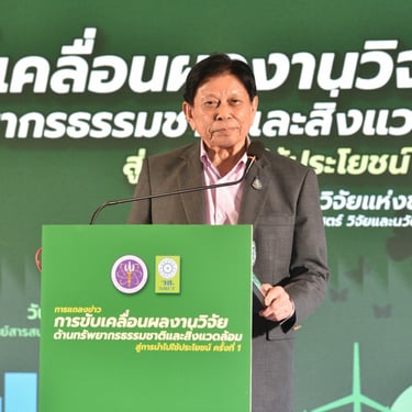 นายสมปรารถนา สุขทวี รองผู้อำนวยการสำนักงานการวิจัยแห่งชาติ กล่าวว่า วช. มุ่งเน้นการทำงานแบบบูรณาการ ในรูปแบบภาคีเครือข่าย ขับเคลื่อนผลงานวิจัยและนวัตกรรมที่เกิดผลสำเร็จ นำส่งสู่ผู้ใช้ประโยชน์ จึงเป็นที่มาของการจัดตั้ง “ศูนย์ขับเคลื่อนการใช้ประโยชน์งานวิจัยด้านทรัพยากรธรรมชาติและสิ่งแวดล้อม” เพื่อใช้เป็นกลไกการดำเนินงานในส่วนขยายผลงานวิจัย โดยการประเมินผลงานวิจัยและนวัตกรรม การติดตาม
