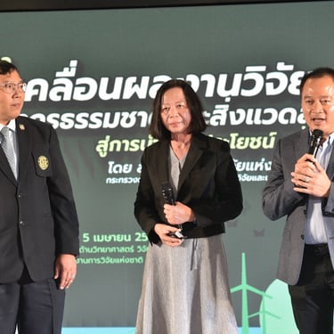 วันที่ 5 เมษายน 2567 สำนักงานการวิจัยแห่งชาติ (วช.) กระทรวงการอุดมศึกษา วิทยาศาสตร์ วิจัยและนวัตกรรม จัดงานแถลงข่าวการขับเคลื่อนผลงานวิจัยด้านทรัพยากรธรรมชาติและสิ่งแวดล้อมสู่การนำไปใช้ประโยชน์ ครั้งที่ 1 เพื่อประเมินผลผลิต ผลลัพธ์ ผลกระทบของโครงการวิจัย วิเคราะห์ และขับเคลื่อนผลงานวิจัยสู่การนำไปใช้ประโยชน์จริง โดย ดร. วิภารัตน์ ดีอ่อง ผู้อำนวยการสำนักงานการวิจัยแห่งชาติ มอบหมายให้ นายสมปรารถนา สุขทวี รองผู้อำนวยการสำนักงานการวิจัยแห่งชาติ เป็นประธานในพิธี พร้อมด้วย รศ.ดร.นภาวรรณ นพรัตนราภรณ์ ผู้อำนวยการแผนงานศูนย์ขับเคลื่อนผลงานวิจัยด้านทรัพยากรธรรมชาติและสิ่งแวดล้อมสู่การนำไปใช้ประโยชน์ กล่าวถึงวัตถุประสงค์ของการจัดโครงการ และ ศ. ดร.สนิท อักษรแก้ว ประธานกรรมการดำเนินงานสนับสนุนการวิจัยและนวัตกรรม ประเด็นเป้าหมายด้านการพัฒนาสุขภาพ สังคม และสิ่งแวดล้อม วช. กล่าวสรุปการแถลงข่าว ณ ศูนย์สารสนเทศกลางด้านวิทยาศาสตร์ วิจัยและนวัตกรรม สำนักงานการวิจัยแห่งชาติ