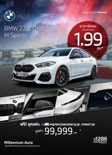 มิลเลนเนียม ออโต้ กรุ๊ป กระตุ้นความเร้าใจเต็มสูบ กับ BMW 220i Gran Coupe M Sport ฟรีชุดแต่ง M Performance มูลค่าเกือบ 100,000 บาท