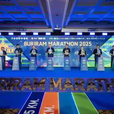 วันที่ 27 สิงหาคม 2567 สโมสรราชพฤกษ์ กรุงเทพฯ : งานแถลงข่าวการจัดการแข่งขัน “บุรีรัมย์ มาราธอน 2025 พรีเซนเต็ด บาย น้ำแร่ธรรมชาติตราช้าง” ภายใต้แนวคิด Your Ultimate Destination สวรรค์ของนักวิ่ง ที่จะจัดแข่งขันในวันที่ 25 มกราคม 2568 หนึ่งในงานวิ่งที่ได้รับความนิยมมากที่สุด มีนักวิ่งร่วมงานมากกว่า 3 หมื่นคน ได้รับการรับรองจากสหพันธ์สมาคมกรีฑานานาชาติ (World Athletics) มาตรฐาน Gold Label ระยะมาราธอนรายการแรกและรายการเดียวของประเทศไทย