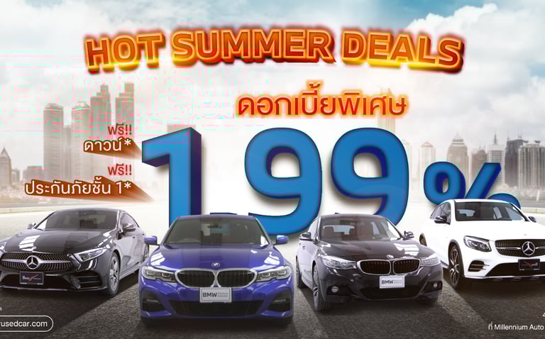 มาสเตอร์ฯ จัดเต็มรับซัมเมอร์ กับแคมเปญ ‘Hot Summer Deals’ ภายใต้ข้อเสนอสุดพิเศษที่ยากจะปฏิเสธ กับรถยนต์ บีเอ็มดับเบิลยู และ เบนซ์ มือสอง หลากรุ่น รวมกว่า 60 คัน มาให้ลูกค้า ได้เลือกสรรและจับจองก่อนใคร อาทิ