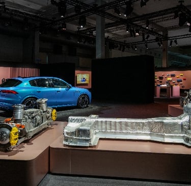 โซนการเดินทางด้วยยนตรกรรมไฟฟ้า จัดแสดง มาเซราติ เกรคาเล่ โฟลกอเร เอสยูวีไฟฟ้า 100% เพื่อแสดงความล้ำสมัยของการติดตั้งระบบขับเคลื่อนด้วยไฟฟ้าเต็มรูปแบบ ติดตั้งแบตเตอรี่กำลังสูงไว้ใต้ตัวถัง จึงไม่กระทบกับพื้นที่ใช้สอยในห้องโดยสาร ที่นับว่ากว้างที่สุดในรถยนต์กลุ่มเดียวกัน การจัดแสดงวอลล์ชาร์จของ โฟลกอเร ที่ดูหรูหรา รวมไปถึงการนำชุดเพลาขับหน้า – หลัง และแบตเตอรี่แพ็กของ ‘กรันทูริสโม โฟลกอเร’ มาให้ได้ชมกันอย่างใกล้ชิด