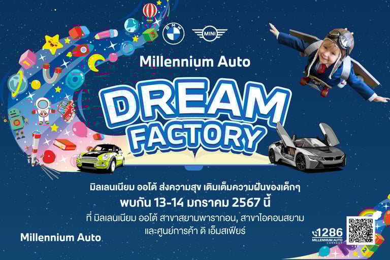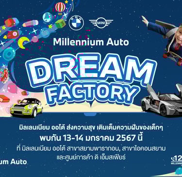 บริษัท มิลเลนเนียม ออโต๊ กรุ๊ป จำกัด ผู้จำหน่ายรถยนต์ บีเอ็มดับเบิลยู, มินิ และมอเตอร์ไซค์ บีเอ็มดับเบิลยู มอเตอร์ราด อย่างเป็นทางการ ภายใต้บริษัท มิลเลนเนียม กรุ๊ป คอร์ปอเรชั่น (เอเชีย) จำกัด (มหาชน) จัดกิจกรรมแสนสนุกต้อนรับวันเด็กแห่งชาติ ‘Millennium Auto Dream Factory’ เนรมิตรพื้นที่ใน 3 ศูนย์การค้าใจกลางเมือง ทั้ง ดิ เอ็มสเฟียร์, สยามพารากอน