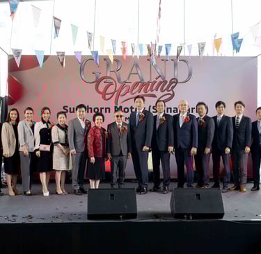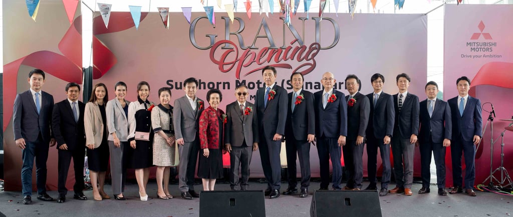 มร. โนโบรุ สึจิ (ที่ 2 จากซ้าย) ประธานคณะกรรมการบริษัท มิตซูบิชิ มอเตอร์ส ประเทศไทย พร้อมด้วย มร. เรียวอิจิ อินาบะ (ซ้ายสุด) กรรมการผู้จัดการใหญ่ มิตซูบิชิ มอเตอร์สประเทศไทย นายสุจินต์ จินดาศักดิ์ชัย (ที่ 2 จากขวา) ประธาน บริษัท สุธร มอเตอร์ จำกัด และ นายเจษ จินดาศักดิ์ชัย (ขวาสุด) กรรมการบริหาร บริษัท สุธร มอเตอร์ จำกัด ถ่ายภาพร่วมกันในพิธีเปิดโชว์รูมและศูนย์บริการแห่งใหม่ ของ สุธร มอเตอร์ สาขาศรีนครินทร์ จังหวัดสมุทรปราการ