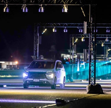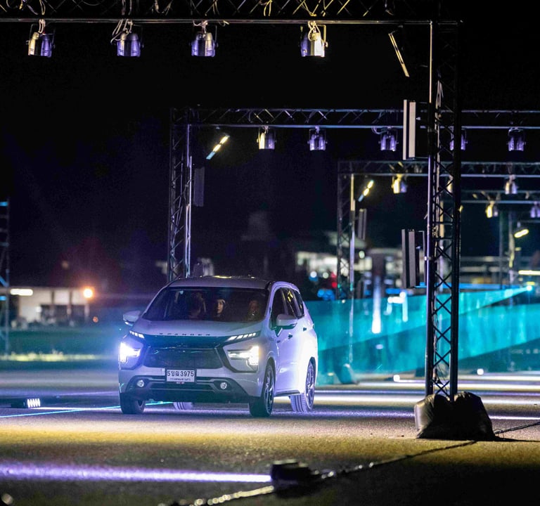 สร้างประสบการณ์การเดินทางไร้ข้อจำกัด ให้ความมั่นใจและปลอดภัยทุกสถานการณ์ พร้อมด้วยระบบควบคุมการขับเคลื่อนและสมดุลขณะเข้าโค้ง (Active Yaw Control: AYC) เทคโนโลยีที่เป็นเอกลักษณ์เฉพาะจากมิตซูบิชิ มอเตอร์สโดยระบบนี้จะควบคุมการทำงานของล้อด้านในและด้านนอกขณะเข้าโค้งให้ ทำงานสัมพันธ์กันและรักษาสมดุลของตัวรถเพื่อรักษาเสถียรภาพให้การขับขี่ในทุกโค้งเต็มเปี่ยมด้วยความมั่นใจ มิตซูบิชิ เอ็กซ์แพนเดอร์ เอชอีวี และ เอ็กซ์แพนเดอร์ ครอส เอชอีวี ยังโดดเด่นเหนือระดับ ด้วยพื้นที่ห้องโดยสารที่กว้างขวาง สะดวกสบายเหนือกว่ารถในระดับเดียวกัน กิจกรรม ‘Mitsubishi e:MOTION VERSE เปิดมิติการขับขี่สุดท้าทาย’ได้ออกแบบสนามทดสอบจำนวนทั้งสิ้น 5 สถานี เพื่อเป็นการเน้นย้ำให้เห็นถึงคุณสมบัติและสมรรถนะที่โดดเด่นของประสบการณ์ การขับขี่แบบ Mitsubishi e:MOTION สถานีแรกเปิดโอกาสให้ลูกค้าได้สัมผัสประสบการณ์การขับขี่จากพลังงานไฟฟ้าด้วย ‘Charge Mode’ และ ‘EV Priority Mode’ ที่สามารถชาร์จไฟฟ้ากลับคืนเข้าแบตเตอรี่ได้แม้จะจอดอยู่กับที่ด้วยเวลาอันสั้น และยังให้ลูกค้าได้สัมผัสถึงการทำงานของมอเตอร์ไฟฟ้าจากพลังงานไฟฟ้า 100% ที่เงียบ พร้อมความคล่องตัวในการหลบสิ่งกีดขวาง ตลอดจนการเก็บเสียงที่ดีเยี่ยมของห้องโดยสาร สถานีที่สอง เป็นการจำลองการทำงานของ ‘Tarmac Mode’ผู้ขับขี่ต้องเหยียบคันเร่งในอัตราความเร็ว 0-100 กิโลเมตรต่อชั่วโมง บนถนนลาดยางในระยะทางที่กำหนด เพื่อสัมผัสถึงพละกำลังแรงบิดอันทรงพลังเช่นเดียวกับโหมดสปอร์ตแต่ยังคงไว้ซึ่งสมรรถนะการขับขี่ที่นุ่มนวล เมื่อถึงสถานีที่สาม ผู้ขับขี่จะต้องปรับรูปแบบการขับขี่ไปยัง ‘Wet Mode’โหมดการขับขี่บนถนนเปียกลื่น ซึ่งเป็นรูปแบบการขับขี่ที่ถูกพัฒนาขึ้นเพื่อให้เหมาะกับภูมิอากาศของประเทศ ไทยโดยเฉพาะ และในสถานีนี้ ผู้ขับขี่ยังได้ทดสอบระบบควบคุมการขับเคลื่อนและสมดุลขณะเข้าโค้ง (Active Yaw Control: AYC) ซึ่งเป็นเอกลักษณ์เฉพาะของมิตซูบิชิมอเตอร์สมอบความปลอดภัยและความมั่นใจในการขับขี่โดยเฉพาะในขณะเข้าโค้งโดยไม่เกิดอาการท้ายปัด หรือ อันเดอร์สเตียร์ (understeer)
