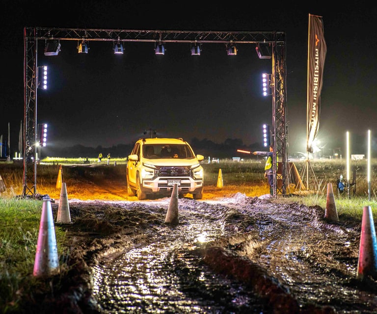สำหรับในสถานีที่สี่ ผู้ขับขี่ได้ทดสอบการใช้งานรูปแบบการขับขี่ ‘Gravel Mode’ ทดสอบการขับขี่บนถนนลูกรัง แสดงให้เห็นถึงความสามารถในการขับขี่บนถนนที่ลื่นไถลจากกรวดหินและฝุ่น แต่ยังสามารถควบคุมตัวรถได้อย่าง มีเสถียรภาพและมั่นใจ และสถานีสุดท้ายกับการทดสอบรูปแบบการขับขี่ ‘Mud Mode’ โดยรูปแบบการขับขี่นี้จะมีการปรับการตอบสนองและการควบคุมที่ทรงพลังบน ถนนดินโคลนอันสมบุกสมบัน ให้สามารถผ่านไปได้โดยไม่ติดหล่ม พร้อมกับความสูงใต้ท้องรถที่ 205 มิลลิเมตรจึงทำให้ผู้ขับขี่ไม่ต้องกังวลกับอุปสรรคบนพื้นผิวถนน จากการทดสอบสมรรถนะทั้ง 5 สถานี จึงเป็นการตอกย้ำถึงสมรรถนะอันเหนือกว่าของ มิตซูบิชิ เอ็กซ์แพนเดอร์ เอชอีวี และเอ็กซ์แพนเดอร์ ครอส เอชอีวี ที่เหนือกว่ารถยนต์ขับเคลื่อนสองล้อ ในกลุ่มรถยนต์ประเภทเดียวกันนอกเหนือจากการได้สัมผัสประสบการณ์การขับขี่รูปแบบใหม่ไปกับ Mitsubishi e:MOTION ลูกค้ายังได้สนุกกับการเล่นเกมและกิจกรรมพิเศษอีกมากมายพร้อมกระทบไหล่กับดาราดังภายในงาน ที่มาร่วมสร้างความสนุกสนานไปกับลูกค้าและร่วมทดสอบการขับขี่กับลูกค้าผู้โชคดีร่วมกัน