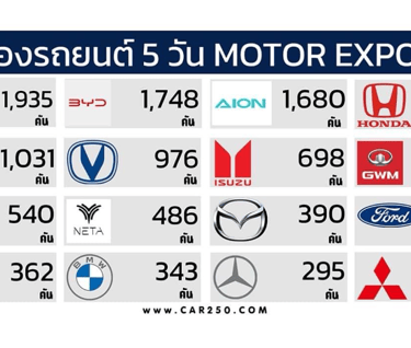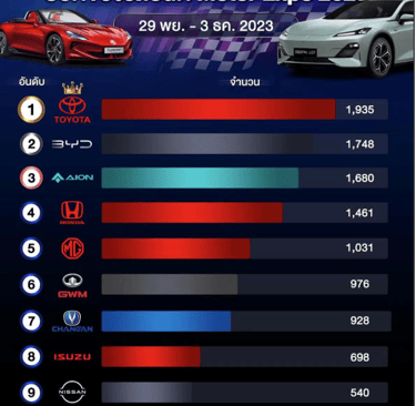 GAC AION วันเดียวยอดจองทะลุ 1,000 คัน ในงาน Motor Expo 2023 ผ่านมา 5 วัน มียอดจองสะสม 1,680 คัน ยอดขายติดอันดับ 3 ในงาน Motor Expo