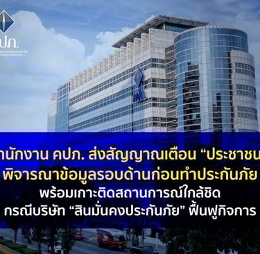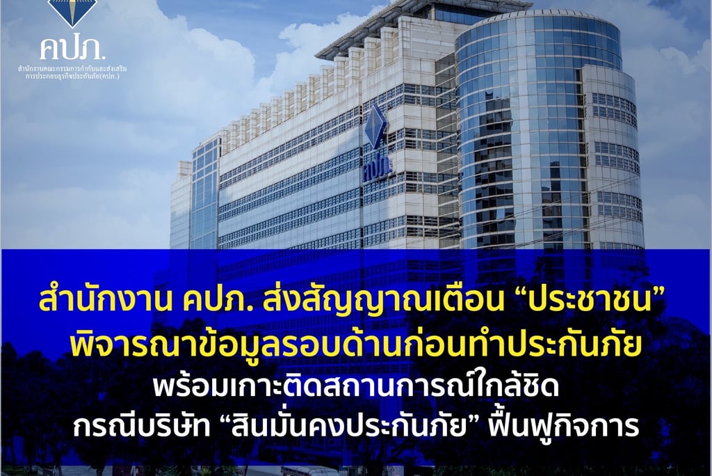 สำนักงาน คปภ. ส่งสัญญาณเตือน “ประชาชน” พิจารณาข้อมูลรอบด้านก่อนทำประกันภัยพร้อมเกาะติดสถานการณ์ใกล้ชิด กรณีบริษัท “สินมั่นคงประกันภัย” ฟื้นฟูกิจการ