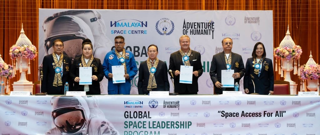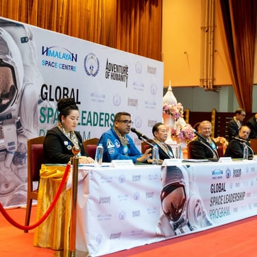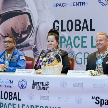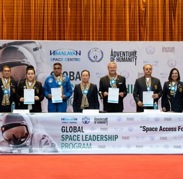 โครงการ GLOBAL SPACE LEADERSHIP PROGRAM จัดตั้งขึ้น โดยความร่วมมือระหว่าง สภาสหพันธ์รักษาสันติภาพ (UNPKFC), ศูนย์อวกาศหิมาลายัน HSC (Himalayan Space Centre) และ Adventure of Humanity เพื่อร่วมกันผลักดันและยืนหยัดความมุ่งมั่นในการขยายความร่วมมือระดับโลก โดยการสร้างพันธกิจร่วมกันเพื่อจุดประกายแรงบันดาลใจ ส่งเสริมความหวัง และปลูกฝังความรู้เพื่อคนรุ่นใหม่ โดยการศึกษาและจินตนาการเป็นรากฐานที่สำคัญในการกำหนดชะตากรรมร่วมกัน เพื่อเผชิญกับความท้าทายอันเร่งด่วน เช่น การเปลี่ยนแปลงสภาพภูมิอากาศ ซึ่งส่งผลกระทบอันหยั่งรากลึกถึงคุณค่าของมนุษย์ ดังนั้นจึงเป็นจุดตัดสินใจคร้ังสำคัญในการเปิดตัวโครงการ Global Space Leadership Program ภายใต้คอนเซ็ปต์การเข้าถึงพื้นที่อวกาศสำหรับทุกคน โดยเชื่อมโยงการส่งเสริมการเรียนรู้ไปจนถึงการพัฒนาเทคโนโลยีที่ล้ำหน้าระดับโลกเพื่อก้าวไปสู่เป้าหมายการพัฒนาที่ยั่งยืน (Sustainable Development Goal) ข้อ 4 คือ Equal Quality Education การศึกษาที่มีคุณภาพอย่างเท่าเทียม และเป้าหมายข้อที่ 17 Partnership for the goals เพื่อเสริมความแข็งแกร่ง ให้แก่กลไกการดำเนินงานและฟื้นฟูความร่วมมือระดับโลกเพื่อการพัฒนาที่ยั่งยืน และเพื่อที่จะยืนหยัดจุดประกายการเปลี่ยนแปลงเชิงบวกในระดับโลก โดยในพิธี มีหม่อมราชวงศ์ จิราคม กิติยากร เป็นประธานเปิดงาน