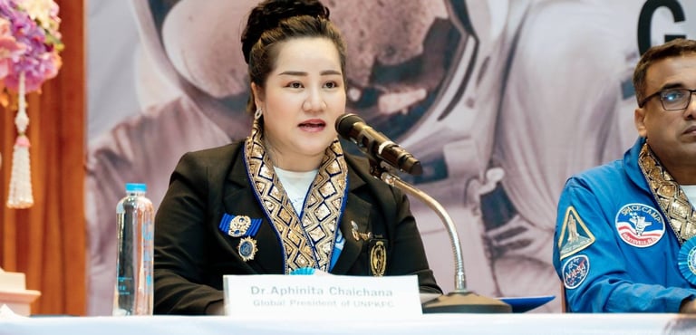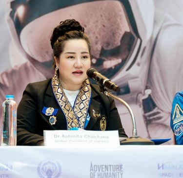 Dr. Aphinita Chaichana, President of “Global Space Leadership Program” Operation in Thailand and the Asian region delivered a speech that the project was the cooperation among United Peace Keepers Federal Council, Mr. Afroz Mamun--Chairman of the Himalayan Space Center and Space Camp Ambassador of NASA, United States, and Mr. Richard Nilsson--President of Adventure of Humanity, which is the World-Class organization founded by Michael Jackson and Nelson Mandela. In hands of these potential partners, courses and programs will be organized by HSC to provide equal access for all youth; and in the part of Soft Power in education, music and fashion, influencers and famous people around the world will collaborate with Adventure of Humanity and UNPKFC, which are partners from affiliated network, can strengthen youth and adolescents who will shape future of the world with stronger capability and better efficiency.